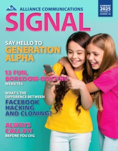 SAY HELLO TO GENERATION ALPHA 13 FUN, BOREDOM-BUSTING WEBSITES WHAT’S THE DIFFERENCE BETWEEN FACEBOOK HACKING AND CLONING? ALWAYS CALL 811 BEFORE YOU DIG ALLIANCE COMMUNICATIONS SIGNAL SUMMER 2025 VOLUME 27 NUMBER 128