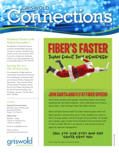 Dividend Checks to Be Mailed December 1 Dividends to Griswold Communications shareholders are paid 10 years in arrears; therefore, the checks are for services from 2015. If you do not get your dividend check or you have questions, call our business office at 712-778-2121. Serving You Is a Gift All Year Long It’s a pleasure to help keep you connected! Griswold Communications employees and board wish you and your family a happy holiday season. Our business office will be closed Thursday, December 25 and Friday, December 26 for the Christmas holiday, and Thursday, January 1 for the New Year’s holiday. GRISWOLD Connections Cornerstone Group © 2025 WI NTER 2 0 2 5 Contact Griswold Communications 607 Main Street / PO Box 640 Griswold, IA 51535 Phone: 712-778-2121 Office Hours Monday – Friday 7:30 am to 12:30 pm and 1:00 pm to 4:00 pm Email us at gctc@netins.net Visit us online at griswoldcommunications.com FIBER’S FASTER than eight tiny reindEer JOINSANTAAND FLYATFIBERSPEEDS You’d think reindeer with speedy names like Dasher and Comet would be fast. But Santa realized—with a little help from his techsavvy elves—that nothing’s faster than fiber internet. Want to follow Santa’s lead? Our fiber internet plans offer multiple speeds to choose from up to 1 Gig. Update now, with no fee to change speed, and fly through online activities. To double your savings, add a router from Griswold Communications with no fee to install. We set it up, secure it, and include access to apps for network management. CALL 712-778-2121 AND SAY SANTA SENT YOU Certain restrictions apply. Contact us for details.