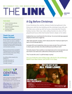 Cornerstone Group © 2025 Thank You and Happy Holidays We are thankful for this time of year, as it’s the season set aside to celebrate gratitude and the spirit of giving. We sincerely thank you for supporting our local company and allowing us to provide your communications services. May you and yours have a wonderful Thanksgiving and a merry Christmas, with the warmth of the season filling your home and hearts. Our offices will be closed for the holidays on: Thursday, November 27 Thursday, December 25 Thursday, January 1 308 Frontage Road, Sebeka, MN 56477 800-945-2163 • 218-837-5151 wcphone@wcta.net • www.wcta.net Office Hours Mon-Fri, 8AM-4:30PM Customer Service Available 24/7 After Hours Repair 218-837-5151 Call Before You Dig Dial 8-1-1 THIS ISSUE 02 C lassic Christmas Movies and TV Specials 03 Gig Internet Greatly Enhances Online Activities 04 E mployee Spotlight: Ravin Saldana THE LINK NOV/DEC 2025 WE CONN E CT YOU , ON E N EWS L E T T E R AT A T I ME . A Gig Before Christmas It was Christmas Eve, and the Johnson family had gathered in the living room with the tree twinkling and the stockings hung with care. The kids were curled up with hot cocoa, streaming their favorite holiday movies. Mom was video calling Grandma to show off the gingerbread house while Dad tracked Santa’s sleigh on his tablet. Suddenly there was a loud thump from the chimney. Two red and white legs appeared, dangling as Santa tried to wiggle free. “Well,” Santa said with a chuckle, “I had to stop by early when I heard you signed up for Gig for Life with Manage MyWi-Fi.” He dusted off his suit, handed Dad a shiny new router, and said, “Now you’ll be able to stream, game, and video chat without buffering for just $99 per month.” The family cheered. There would be no more dead zones and no more arguments over slow internet. Even Santa took a selfie before climbing back up the chimney. “This,” he said with a wink, “is a gift that keeps on giving.” Give your family the same holiday magic with Gig for Life and Manage MyWi-Fi fromWest Central. Call 218-837-5151 today.