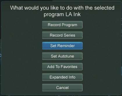 A Scheduled Event is any setting you create that causes the system to remind you about a program or record a program automatically. There are three types of Scheduled Events: Reminders, Autotunes and Recordings. A Reminder informs you a program is about to come on. An Autotune automatically changes the channel when the program is about to start. A Recording will automatically record the program to your set top box. Note: Your set top box must support recording to use the Record event.