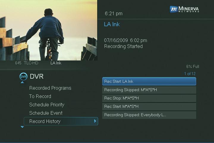 Scroll down the DVR listings and highlight Record History and press OK.
