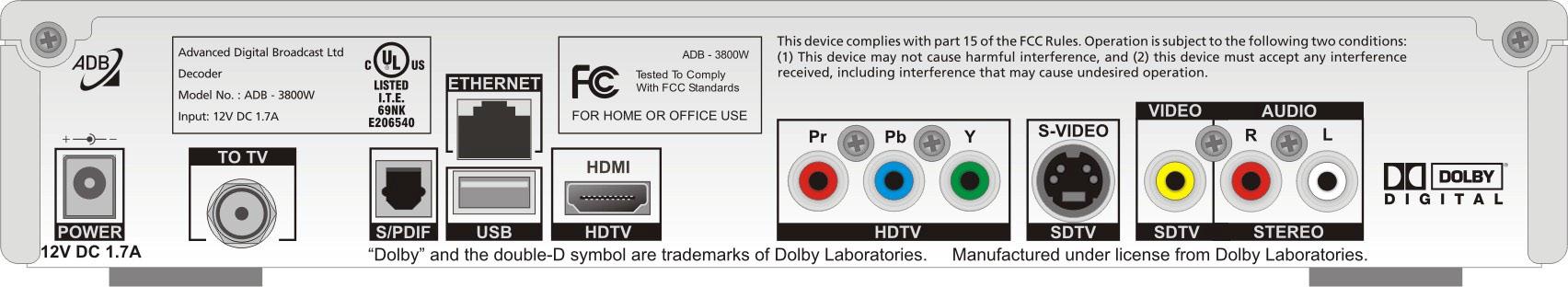 1. Power 12V DC 1.7A Provides power to the set top box.