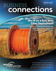 We’re on a Roll With Fiber Deployment Huxley is connecting more rural businesses to the speed and reliability of fiber internet. 5 Ways Your Business Can Benefit from Fiber 3 Business Spotlight: Huxley Communications 4 Understanding How Fiber-Optic Cable Works 6 Why Choose a Local Internet Service Provider? 7 INSIDE CONTENTS BUSINESS connections SPRING 2026 VOLUME 1 • ISSUE 1